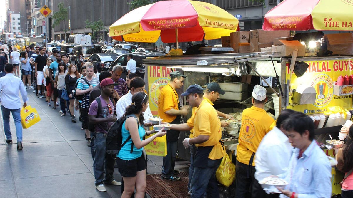 Sejak tahun 1990an, New York mulai mengenal gerobak makanan halal kaki lima yang awalnya dijajakan para pedagang imigran asal Timur Tengah, Asia atau Afrika.